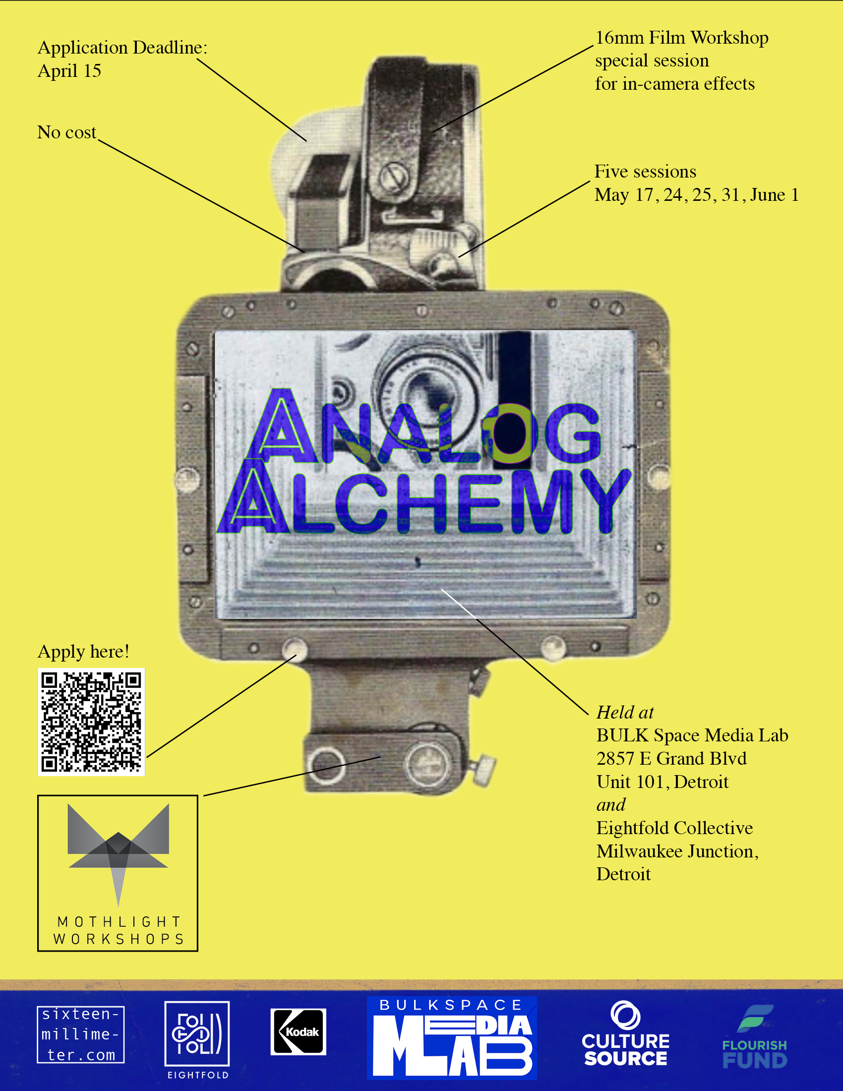 In 2022 Julia Yezbick and Shanna Maurizi met in a cafe on Livernois and Mothlight Workshops was born. Since then we’ve held several multi-day workshops with various partners around the city including Carpenter Creative Corridor and Detroit Narrative Agency, and plan to hold many more in the coming years. The aim with these workshops is to build a local ecosystem around 16mm filmmaking, to gather people around a common love for creative expression, and to demonstrate that this practice is more accessible than people might have previously assumed. Mothlight Workshops offers no-cost 16mm filmmaking workshops, public screenings, and equipment access to help build a deeper and more active celluloid film presence among Detroiters from all walks of life and experience levels.